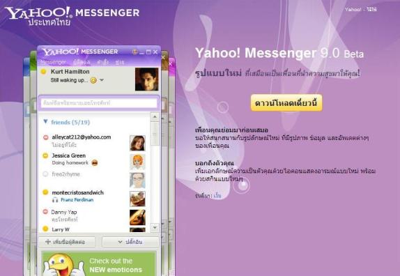 ดีใจนะครับที่หลายคนสนใจเจ้าตัว IM ตัวนี้ คือในเมืองไทยผมว่าเราใช้ MSN (Windows Live Messenger) กันเยอะมาก จนกลายเป็นเวิร์บไปแล้ว เช่น “คืนนี้ออนเอ็มมั้ย” สักวันผมจะได้ยินว่า “คืนนี้ Yahoo! มั้ย?” แหม มันแปลกๆ แต่ถ้าเป็นไปได้ก็ดีสิ