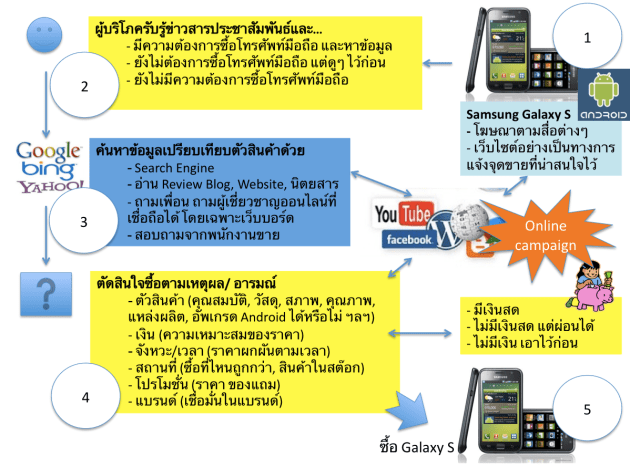 แผนภาพแสดงถึงกระบวนการตัดสินใจเลือกซื้อโทรศัพท์มือถือสักเครื่อง ซึ่งแผนภาพนี้ทำให้ผมสามารถตัดสินใจเลือกใช้สื่อออนไลน์ได้มีประสิทธิภาพมากขึ้น