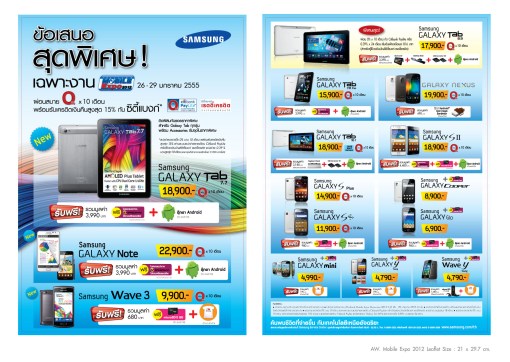 วันนี้ตั้งใจอุ้มไก่ตัวโตให้บริษัทก็เลยเข้ามาอัพเดตกันว่าใครอยากได้มือถือใหม่ๆ ช่วงนี้ลองพิจารณา Galaxy Tab 7.7 , Galaxy Nexus และ Galaxy Note สีขาวกันได้นะครับ ไม่มีคำอธิบายใดๆ สำหรับความโดดเด่นในแต่ละรุ่น คิดว่าคนที่อ่านบล็อกผมก็คือคนที่รู้จักมันอยู่แล้ว แค่อาจจะยังไม่แน่ใจว่าจำหน่ายที่ไหนอย่างไรเท่านั้นเอง แต่ในงาน Thailand Mobile Expo 2012 ยังมีให้เลือกอีกเพียบเลยเอามาอัพเดตกันหน่อย ใครว่างๆ ช่วงนี้เชิญที่งานนะครับ ที่ศูนย์สิริกิติ์ ตั้งแต่เวลา 10.00 – 20.00 น. ตั้งแต่ 26 – 29 มกราคมนี้
