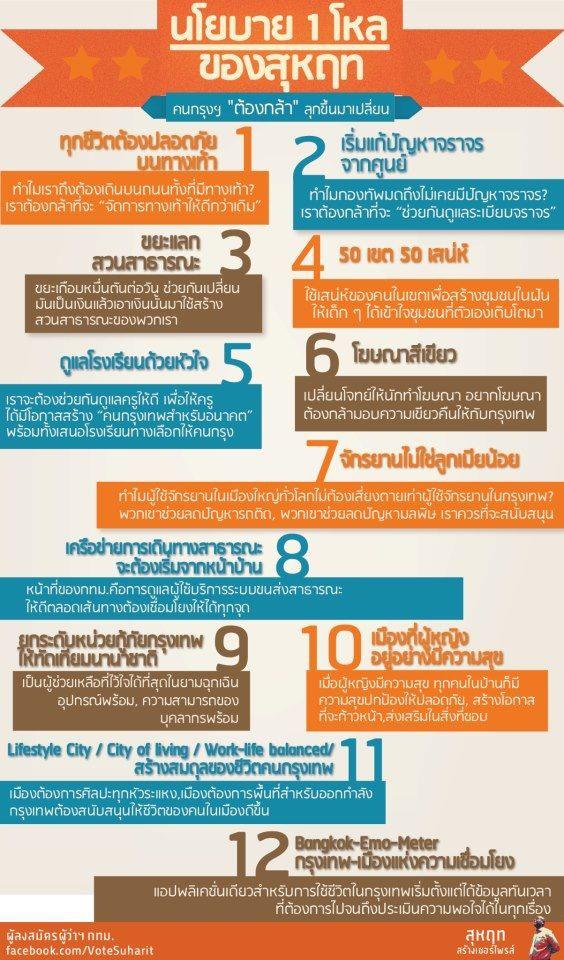 ในที่สุดระบอบประชาธิปไตยก็ได้คืนอำนาจให้ประชาชนคนกรุงเทพฯ เตรียมตัวเลือกตั้งผู้ว่าราชการของตัวเองอีกครั้งหนึ่งในวันอาทิตย์ที่ 3 มีนาคม พ.ศ. 2556 และการเลือกตั้งครั้งนี้น่าสนใจตรงที่มีตัวเลือกผู้สมัครที่มีคุณภาพน่าสนใจกว่าที่ผ่านๆ มา ไม่ได้มีแต่ “พรรคที่เราชอบ” แต่ด้วยผลงานที่เราได้กันมาแบบเดิมๆ ผมเลยค่อนข้างเชื่อว่าปีนี้สายตาหลายคู่ก็กำลังจับจ้องไปที่ผู้สมัครอิสระรายสำคัญๆ อยู่ 3 ท่าน ท่านแรกคือคุณสุหฤท สยามวาลา นักธุรกิจเจ้าของแฟ้มตราช้าง และดีเจชื่อดัง ท่านที่ 2 คือคุณโฆษิต สุวินิจจิต ผู้สร้างตำนานมีเดียออฟมีเดีย ท่านที่ 3 คือคุณตำรวจตงฉิน เสรีพิศุทธ์ เตมียาเวส แต่ท้ายสุดผมก็มาถูกใจนโยบาย 1 โหลของคุณสุหฤท
